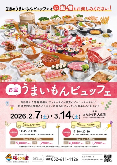 湯~とぴあ宝おたから亭大広間にてビュッフェイベントを開催いたします。